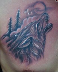 狼头纹身图案:胸部狼头纹身图案纹身图片