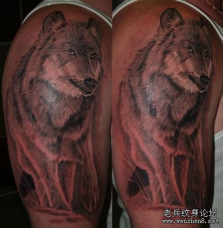 狼头纹身图案:腿部狼头纹身图案纹身图片