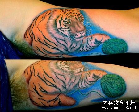 手臂彩色老虎纹身图案大全
