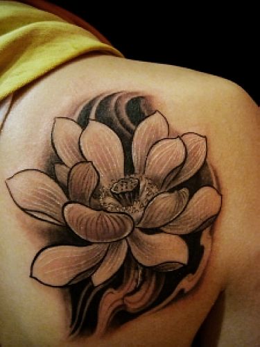 湖北武汉纹身店:美女后背莲花纹身图案图片大全