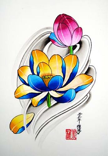湖南长沙纹身店:推荐一款彩色莲花纹身图案大全