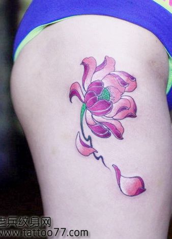 美女腿部性感唯美的莲花纹身图案