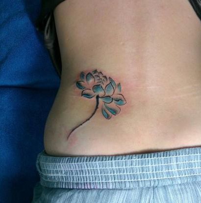 女孩子腰部唯美好看的水墨莲花纹身图案
