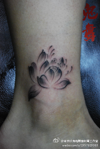 女生脚踝处唯美时尚的水墨莲花纹身图案
