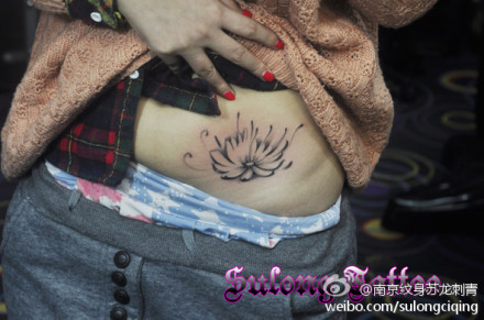 女生腹部唯美时尚的莲花纹身图案