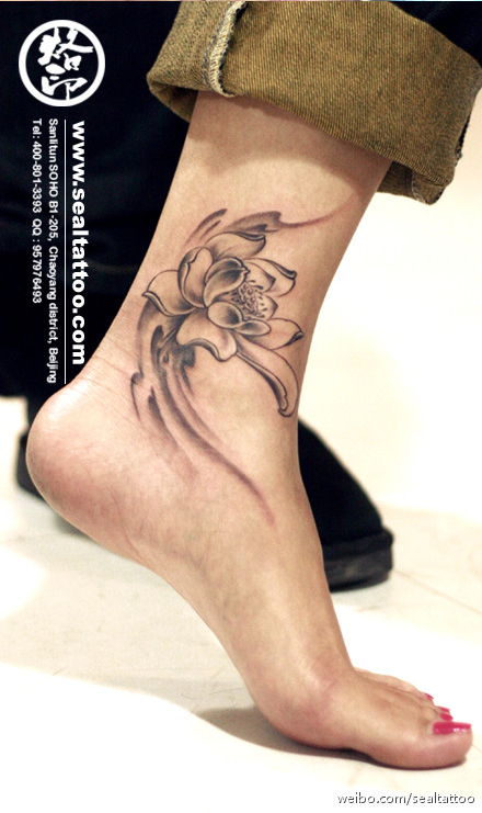 美女脚踝处精美时尚的莲花纹身图案