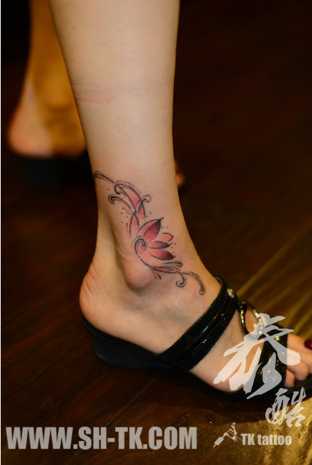 女生脚踝处唯美很漂亮的莲花纹身图案