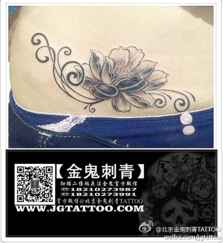 美女腹部唯美时尚的黑灰莲花纹身图案