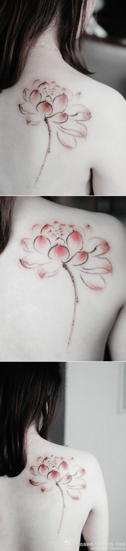 女生肩背唯美潮流的水墨莲花纹身图案