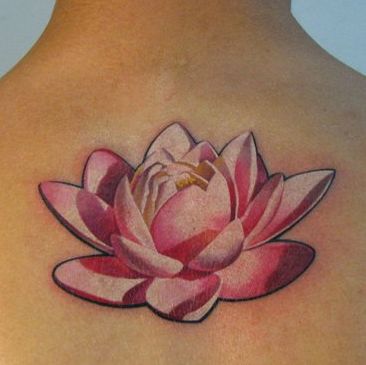 一款时尚艳丽美女肩部彩色莲花纹身图案纹身图片