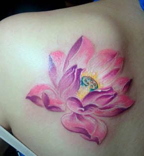 莲花纹身:肩部彩色莲花纹身图案纹身图片