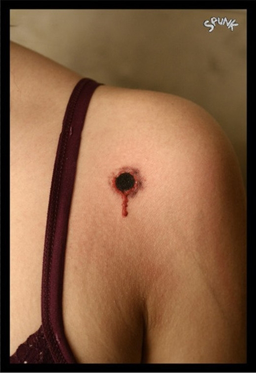 女生肩膀处时尚简单的弹孔纹身图案