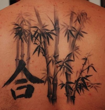 背部竹子文字纹身图案大全