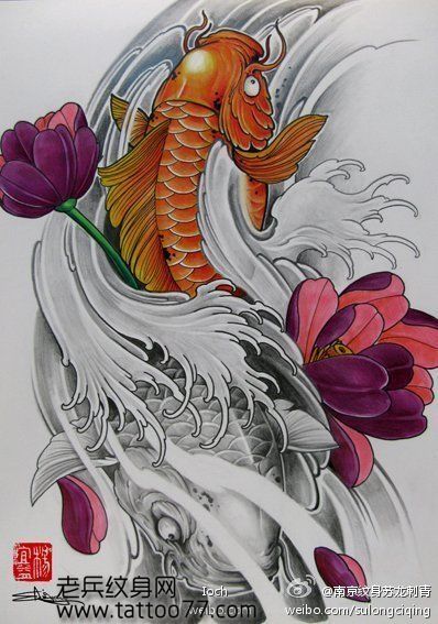 半胛鲤鱼纹身图案