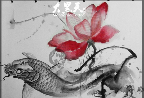 鲤鱼纹身图案大全:鲤鱼莲花纹身图案