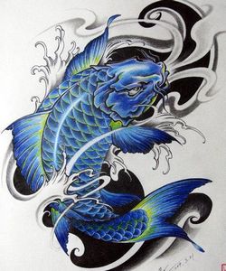 半胛蓝鲤鱼纹身图案