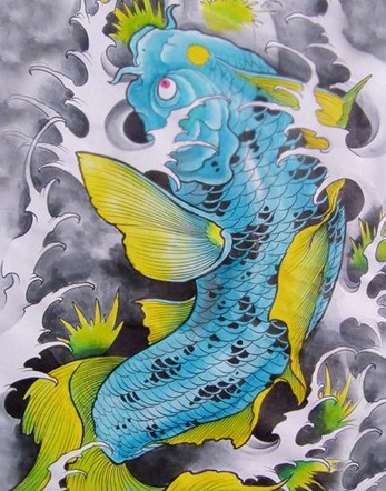 半胛蓝鲤鱼纹身图案