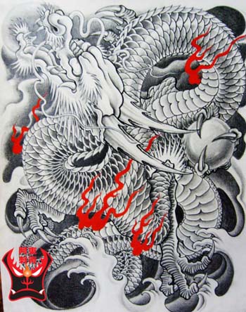仙桃满背龙纹身手稿手稿图案图片(tattoo)