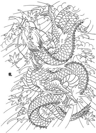 仙桃满背龙纹身手稿手稿图案图片(tattoo)