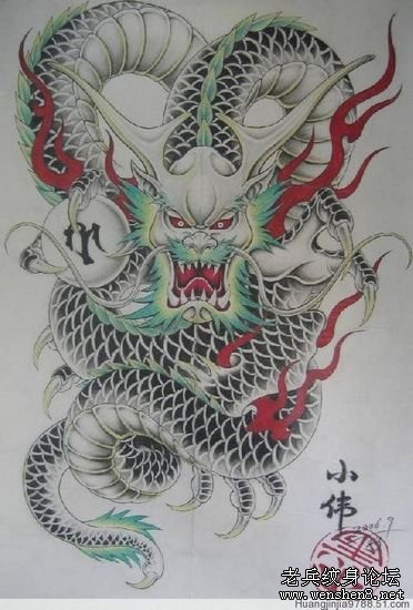 满背彩色龙纹身图案纹身图片—武汉文身刺青店提供