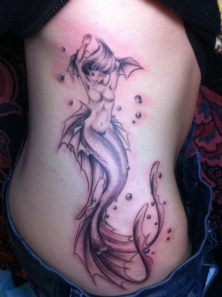 美女腰部唯美好看的美人鱼纹身图案