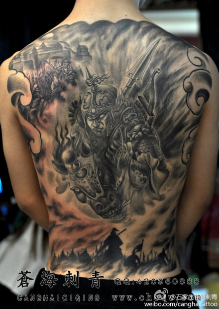 超帅很酷的满背赵云纹身图案