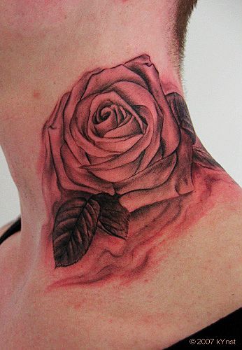 湖北孝感文身店:颈部黑白玫瑰文身图案大全