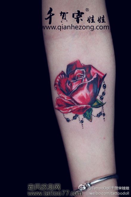 分享一款手腕内侧写实个性的玫瑰花纹身图案