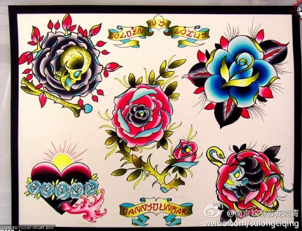 漂亮的一组玫瑰花纹身手稿纹身图案