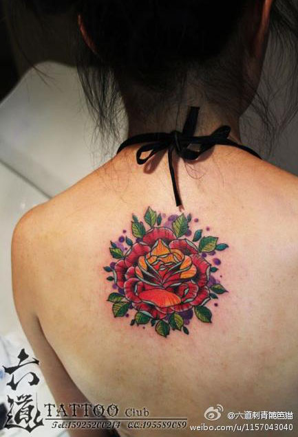 后背玫瑰纹身图案