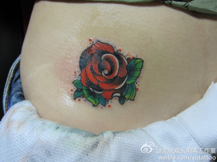 美女肩膀颜色艳丽的彩色玫瑰花纹身图案