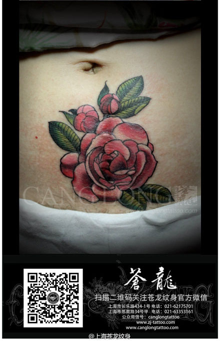 女人腹部漂亮好看的彩色玫瑰花纹身图案