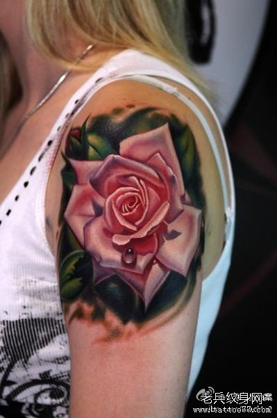 肩部玫瑰纹身图案
