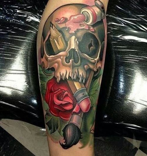 推荐一款时尚潮流的骷髅玫瑰花纹身图案