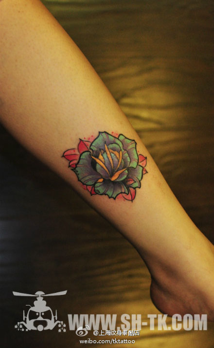 小腿玫瑰纹身图案