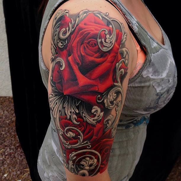 美女大臂一款潮流经典的玫瑰花纹身图案