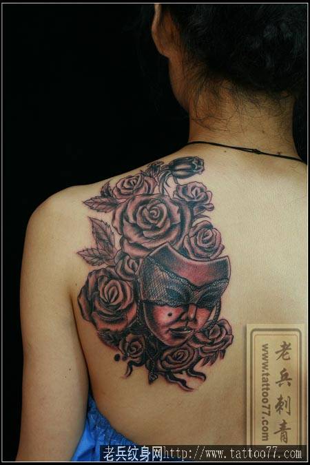 武汉纹身培训学习学校打造一款玫瑰面具纹身作品