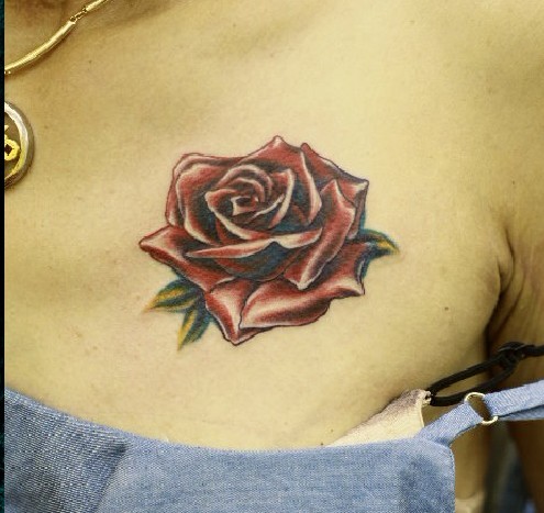 臀部彩色玫瑰花卉纹身图案纹身图片