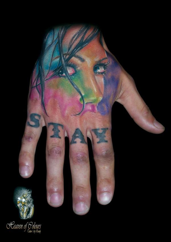 武汉纹身店:手部美女肖像纹身图案图片大全