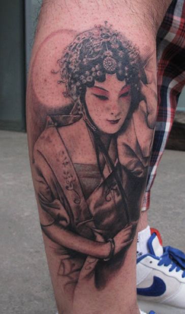 腿部漂亮的古典美女花旦纹身图案