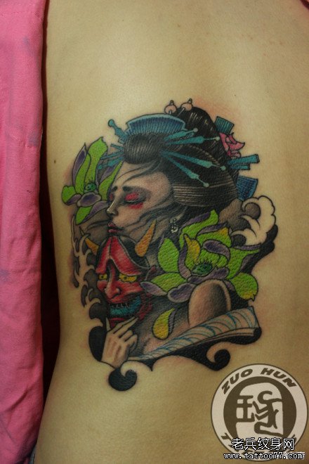 女生腰部漂亮时尚的美女艺妓纹身图案