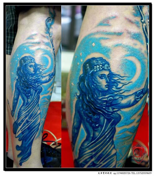 腿部漂亮经典的欧美美女纹身图案