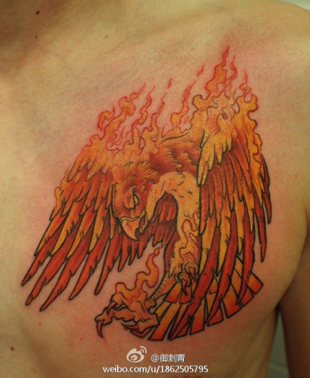 前胸经典超酷的彩色火焰老鹰纹身图案