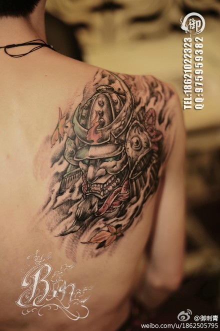 男生肩背超帅的般若武士纹身图案