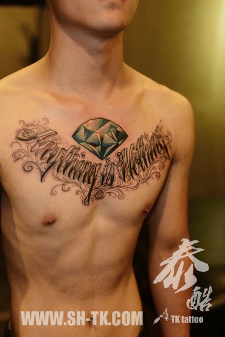 男生前胸潮流很帅的钻石与花体字母纹身图案