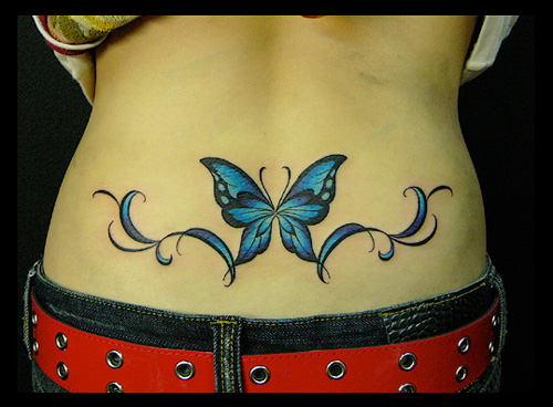 女人性感腰部漂亮的蝴蝶藤花纹身图案欣赏