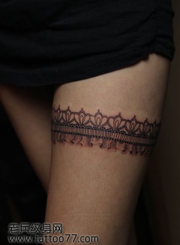 女生腿部精美的蕾丝纹身图案