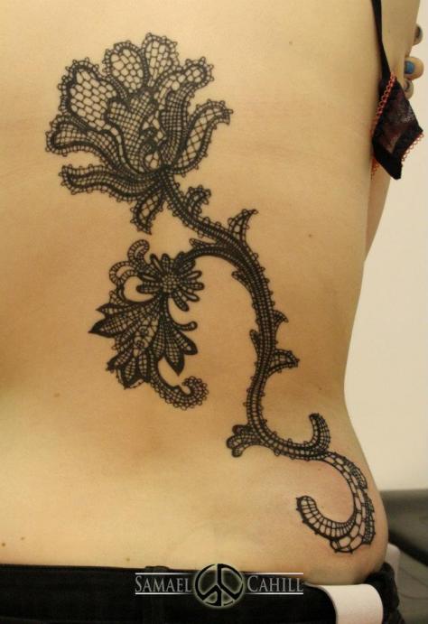 美女后背时尚精美的蕾丝莲花纹身图案