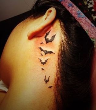 女孩子脖子处图腾小蝙蝠纹身图案