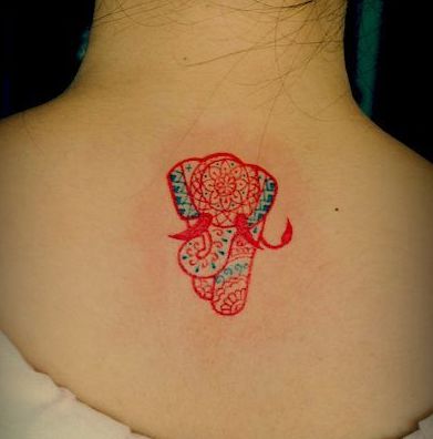 女孩子背部精美的图腾大象纹身图案
